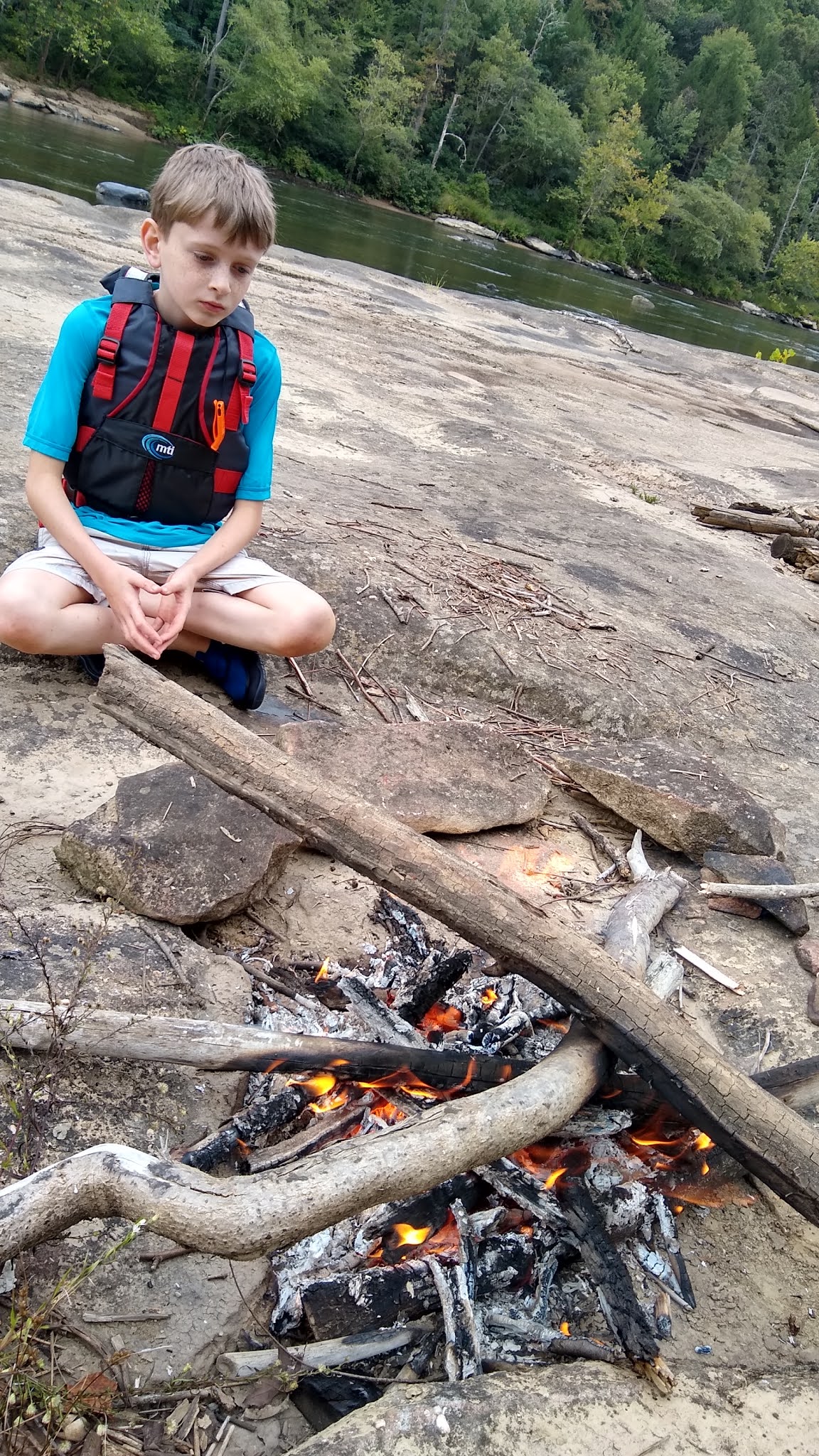 With cooler temperatures that came with September and less time required gardening and putting up food, we’ve been doing more hiking. We had a week without rain last week and took advantage of the low water levels to go to the river. The water temperature was “almost” too cold for swimming, but of course that doesn’t stop little boys from jumping right into it. They ran and played and swam and jumped and fished and cooked 2 pounds of hot dogs over an open fire. Homeschool lessons of the day were 1) how to successfully build a fire using only one match and things we found in the forest, 2) how to cast a rod and reel without piercing your neighbor’s ear, and 3) how to leave-no-trace when all is said and done. Life skills that will take them far, I hope.